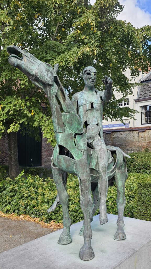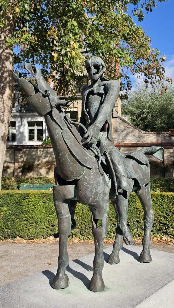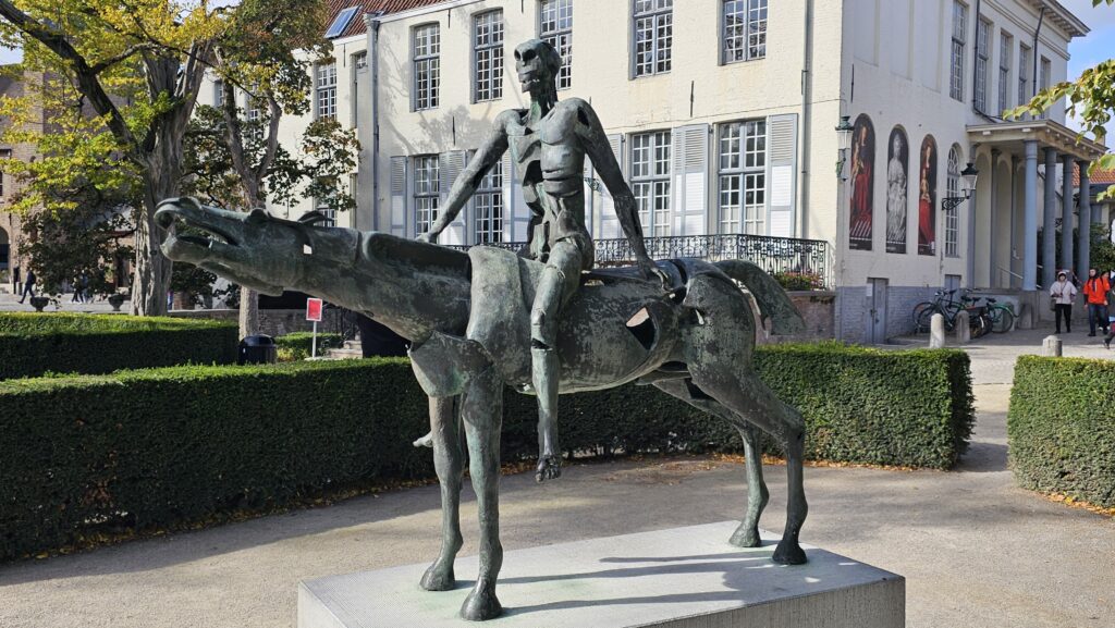 Vom Rest der Truppe war Shopping gewünscht, aber das ist ja im Rudel so gar nicht meins. Eigentlich ist Shopping an sich gar nicht meins, es sei denn, es geht um Kunst oder Essbares. Daher besuchte ich das Groeninge-Museum, kam auf dem Weg dorthin erneut an den vier apoplektischen… äh… anorektischen… MOMENT! apostolischen… hab’s gleich… na, an den Reitern halt vorbei!