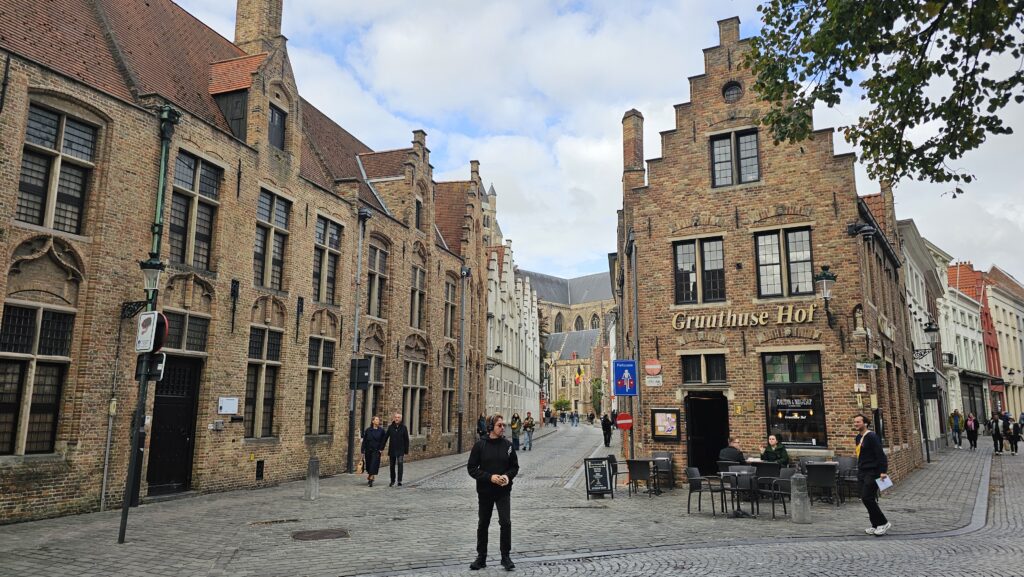 Ich lief dann zum wiederholten Male zur Kirche von unserer lieben Frau, um endlich einen Blick auf die Madonna des Michelangelo zu erhaschen. Wieder nix. Ob ich zur Messe wolle? Ich hätte lügen sollen. Nein, ich wolle die Madonna anbeten. Das ginge erst nachmittags. Grmpflzrmpf! Ich fluchte innerlich gottlose Flüche. Ich begab mich zum Fischmarkt, dort hatte ich gestern so etwas wie einen Kunstmarkt zu sehen geglaubt zu haben. Naja. War dürftig und uninteressant. Den Carillon des Belfried hört man innenstadtweit, es ertönten ganz andere Klänge. Da fiel mir ein, dass es ja zu bestimmten Zeiten manuell gespielt wird und es war soweit. Ich wieder runter zum Belfried geeilt. „Somewhere over the rainbow“, Time to say goodbye“, „When the moon hits your eye“ und viele andere Gassenhauer wurden vorgetragen, das war richtig schön und ich hatte wieder gottgefälligere Gedanken.