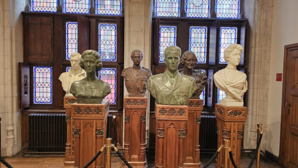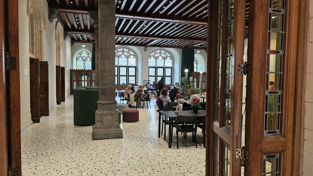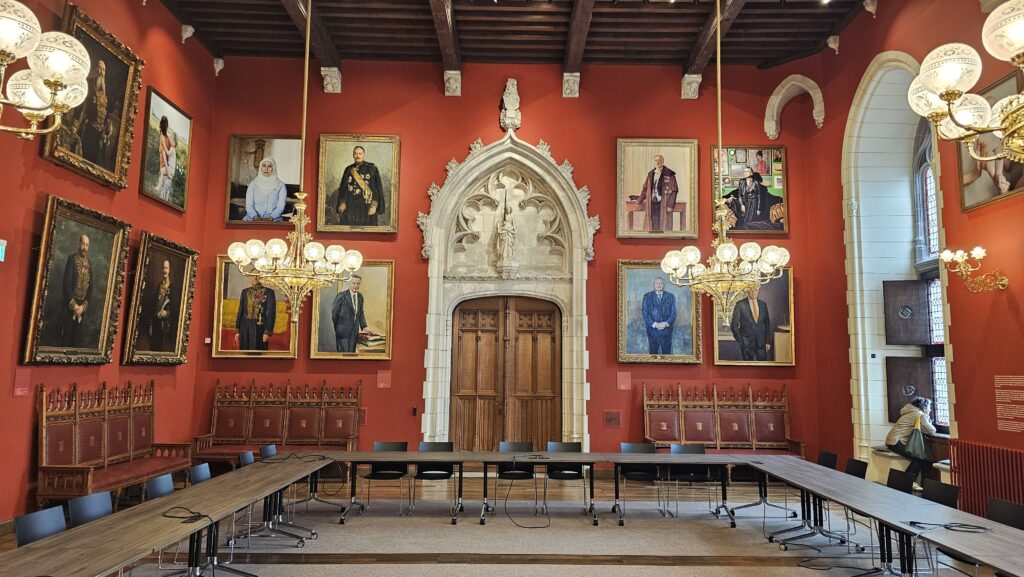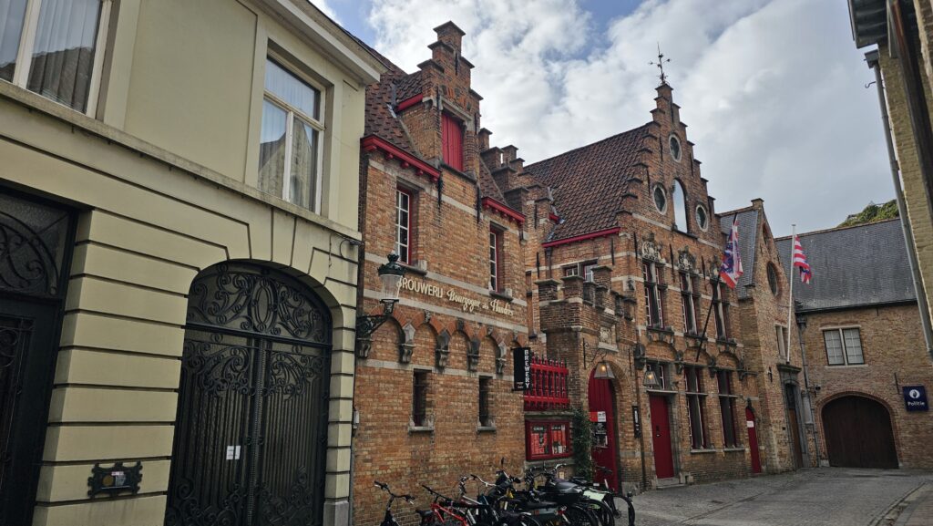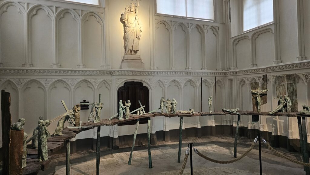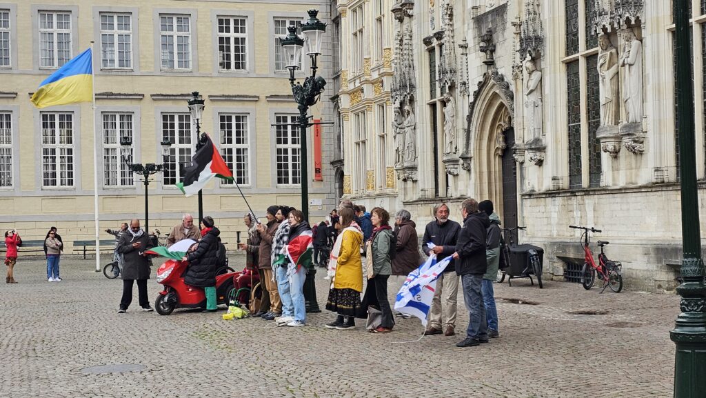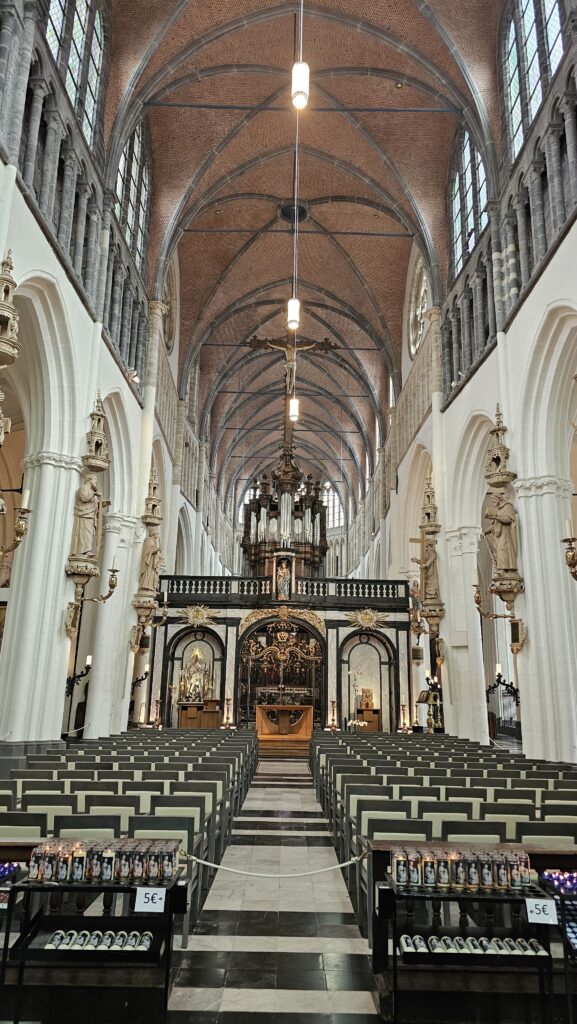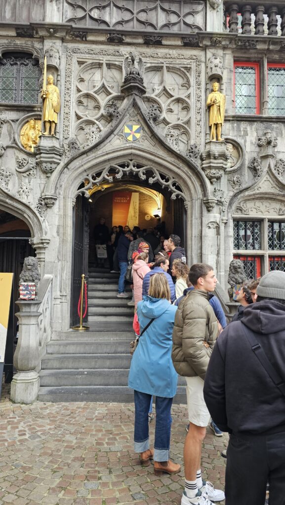 Ich streifte etwas ziellos durch die Stadt und entdeckte ein paar schöne Passagen, die Bierstraße, eine Brauerei, leider Gottes schöne Pralinenläden, konnte einer Candyherstellungsvorführung beiwohnen und spinxte in das ein oder andere öffentliche Gebäude, wo immer riesige Öl-Gemälde von ernst dreinblickenden Männern hängen. Dann endlich war es soweit, der Gottesdienst in der Basilika zum heiligen Blut näherte sich dem Ende und ich reihte mich ein eine kurze Schlange davor ein. Uns wurde bedeutet, es dauere noch ein wenig. Die Schlange wurde rapide länger, während vor dem Stadthuis eine sehr übersichtliche Pro-Pälestina-Demonstration stattfand.