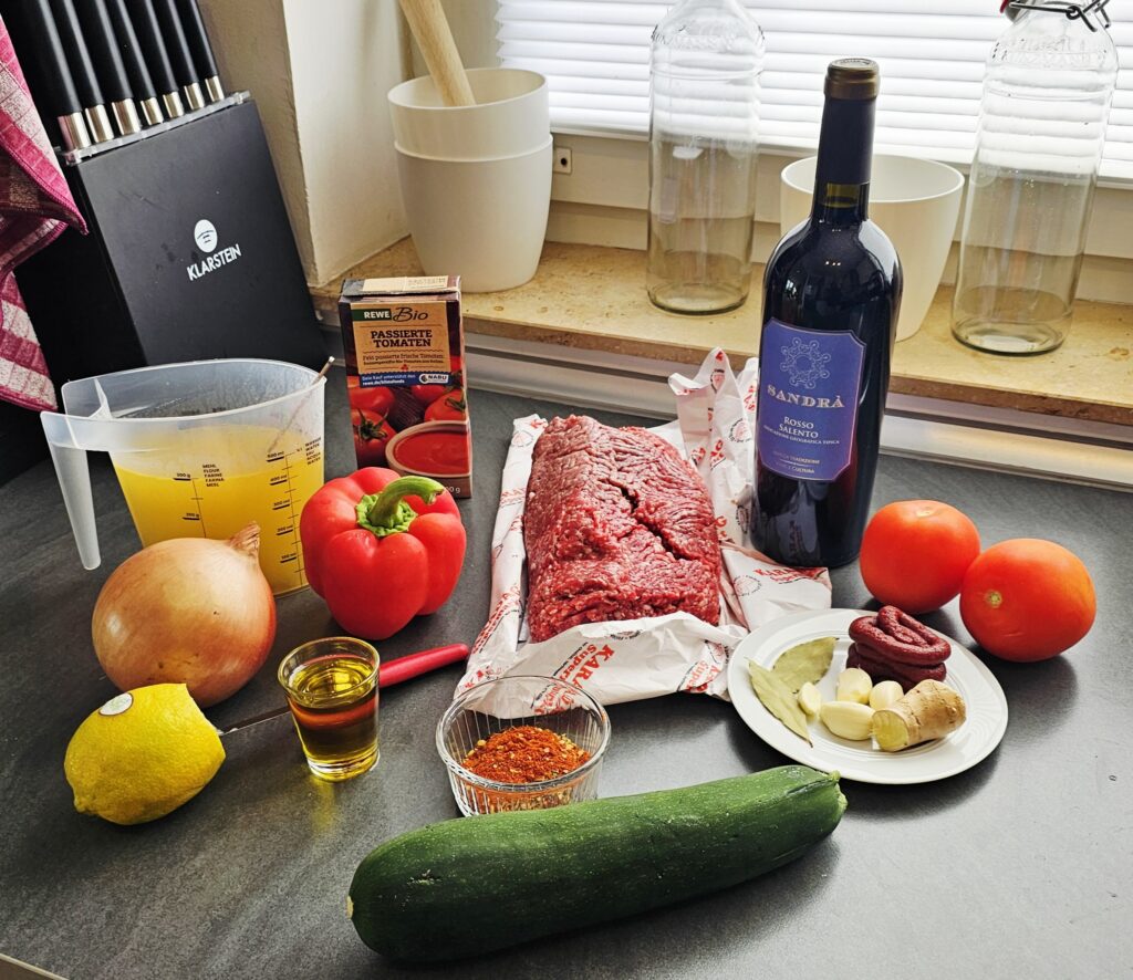 Da ich den Termin völlig verpennt hatte, lief ich gestern noch schnell zum Türken und kaufte gemischtes Hack und ein bisschen Gemüse. Vor die Wahl gestellt, ob sie lieber etwas mit Kartoff… lasst mich doch mal ausreden!… ja, es wurden Nudeln. Daher also eine Bolognese. Mit Nudeln. Ich wollte mal ausprobieren, wie die KI das kochen würde und konsultierte ChatGPT: „Ich möchte eine Lamm-Bolognese machen, die nicht zu fade, aber auch nicht überwürzt sein soll. Ein mediterran-orientalischer Touch wäre aber gut.“.
