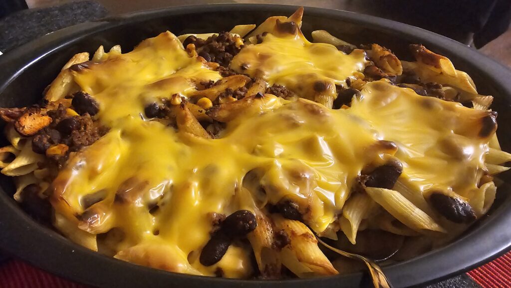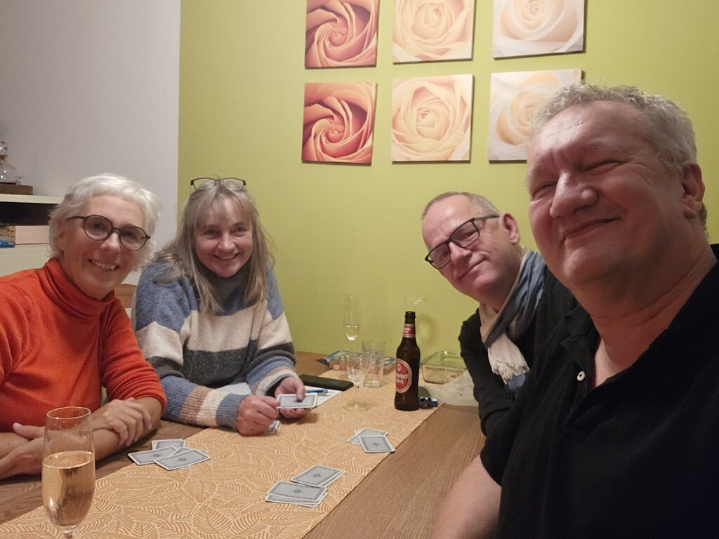 Angenehme Ereignisse gab es gottseidank auch: ein sehr lustiger Doppelkopfabend, an dem ich haushoch verloren habe, und ein Treffen mit Elke und zweiter Zusammenkunft mit Nora. Elke hat ein fantastisches Rezept für einen Nudel-/Hackauflauf mit Cheddar. Hier mal Bilder: