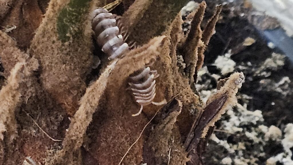 P.S.: Habe ganz vergessen, Euch mein neues Haustier vorzustellen. Kurti, er lebt in meiner Fächerpalme und ist ein Myriopode der Gattung Amplinus, die in Mexiko beheimatet ist. Daher sprechen wir spanisch miteinander.