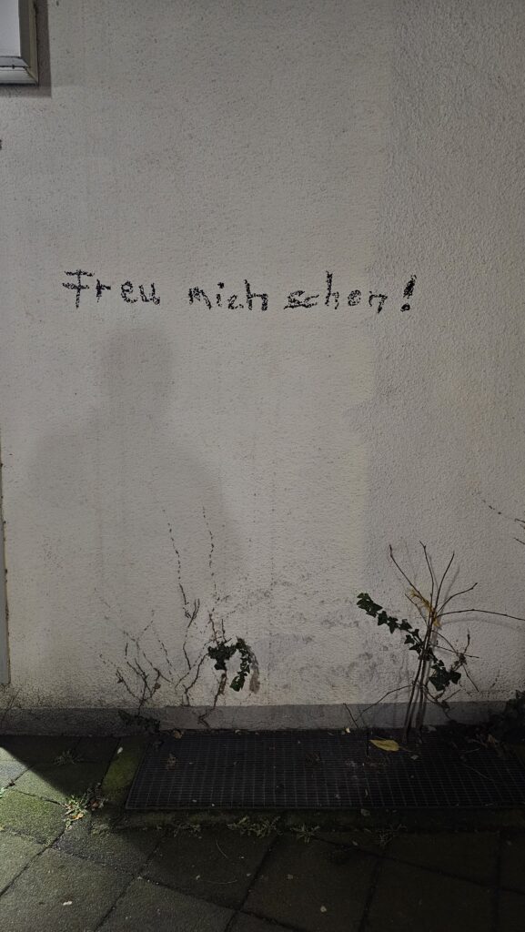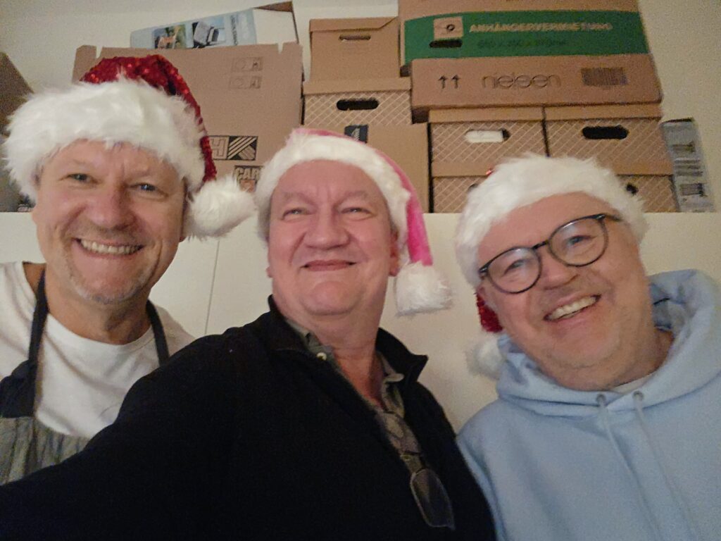 Auf der Partyeinladung war – das hatte ich wieder vergessen – der Dresscode feierlich bzw. weihnachtlich vorgegeben. Ich ergatterte in einem Hattinger Fachgeschäft für elegante Herren-Garderobe (Inh. Erwin Lindemann) eine rosafarbene Weihnachtsmütze und war dann wenigstens nicht der dresscodeloseste Besucher. Das Fest war eine (be)rauschende Ballnacht. Ich taumelte gegen zwei Uhr zu meinem Hotel, erstes Haus am Platze für 54 Euro, ohne Frühstück, ohne alles, und wachte mit leicht erweiterter Hutgröße wieder auf. Zwar wollte ich noch einmal bei Tageslicht durch Hattingen laufen, aber da ich mein Gepäck dabei hatte, der Kater schnurrte und es auch noch nieselte, begab ich mich nach Hause. Ihr Hasen, war schön, gerne wieder!