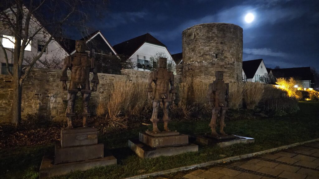 P.S.: Die Geschlechtsteile der drei Ritter (?) vor der Stadtmauer in Hattingen sind mit dem geeigneten Werkzeug wohl abzumontieren und ein beliebtes Souvenir. Es soll ein Depot mit Ersatz… äh… also…