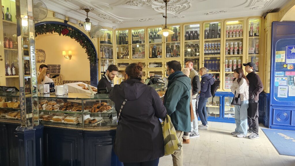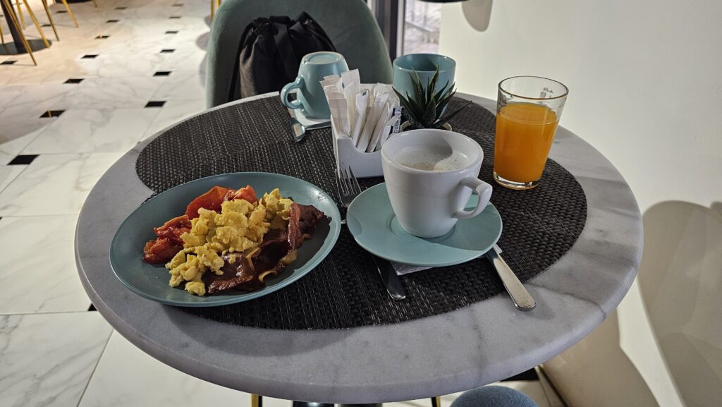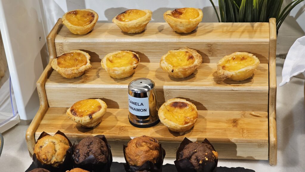 Geschlafen habe ich leider nicht besonders gut, Kopfkissen und Bett sind mir zu hart, dafür wiegt die Decke etwa 50 kg, aber ohne geht es leider auch nicht, es ist zur Zeit ziemlich kalt in Lissabon. Das Frühstück war aber viel besser als erwartet, in Südeuropa stelle ich mich gerne auf in Folie verpacktes Süßgebäck und eine Tasse schwarzen Kaffee ein, hier hat man sich aber auf mich ein wenig eingestellt. Das finde ich sehr lobenswert! An den allgegenwärtigen Pasteis de nata kommt man übrigens auch beim Frühstück nicht vorbei.
