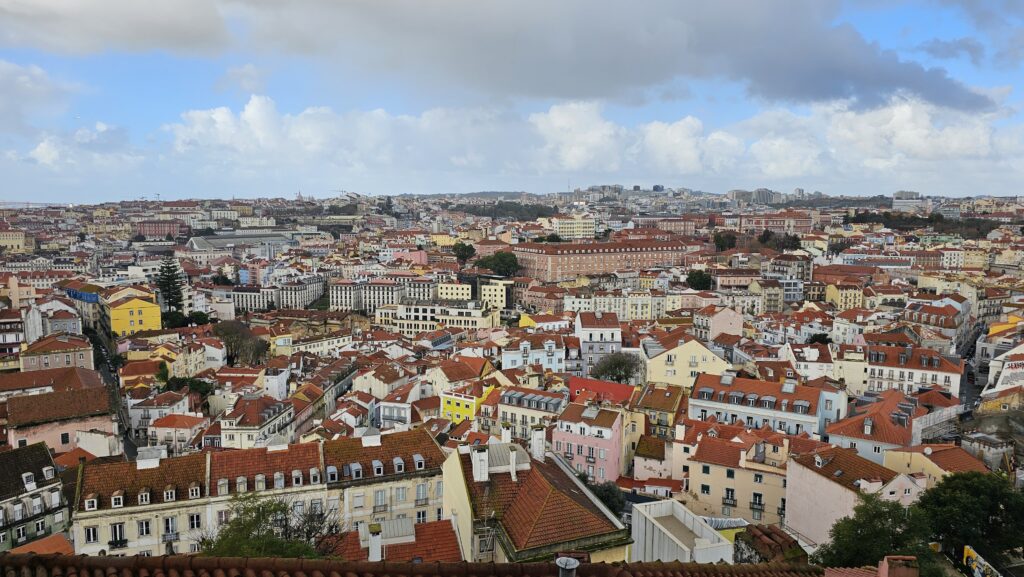 Ich beschloss, den immer noch grauen und nasskalten Tag mit einer kleinen Rundfahrt der Linie 28 zu beginnen, die ich an der Festung kurz unterbrechen wollte. Perspektivwechsel: ich lebe hier und würde gerne zur Arbeit fahren, aber meine Linie 28 ist pickepackevoll mit Touristen! Ja, es ist eine Pest. Ich quetschte mich zwar noch rein, aber dann fuhr die Bahn einfach die nächsten Stationen durch. Ich neige ja etwas zu Panik, wenn es zu kuschelig wird, haute irgendwann auf den Haltewunschknopf und stieg unwissentlich unweit der Igreja de Graça aus. Von da aus hat man einen sehr schönen Blick über die Stadt. Ich zahlte auch noch für den Besuch des Konvents und des Kirchendachs, von dort hat man eine noch bessere Aussicht. Es gab eine kleine Krippenausstellung und ich zündete zwei Kerzen an, eine für mich, eine für Euch. Jaja, das reicht, Ihr seid ja nicht so fegefeuerverdächtig wie ich. Und wie weiland in Palma de Mallorca klarte draußen der Himmel noch ein wenig mehr auf. Gläubig werde ich deswegen zwar nicht, aber schön zu wissen, dass Petrus mich irgendwie mag.