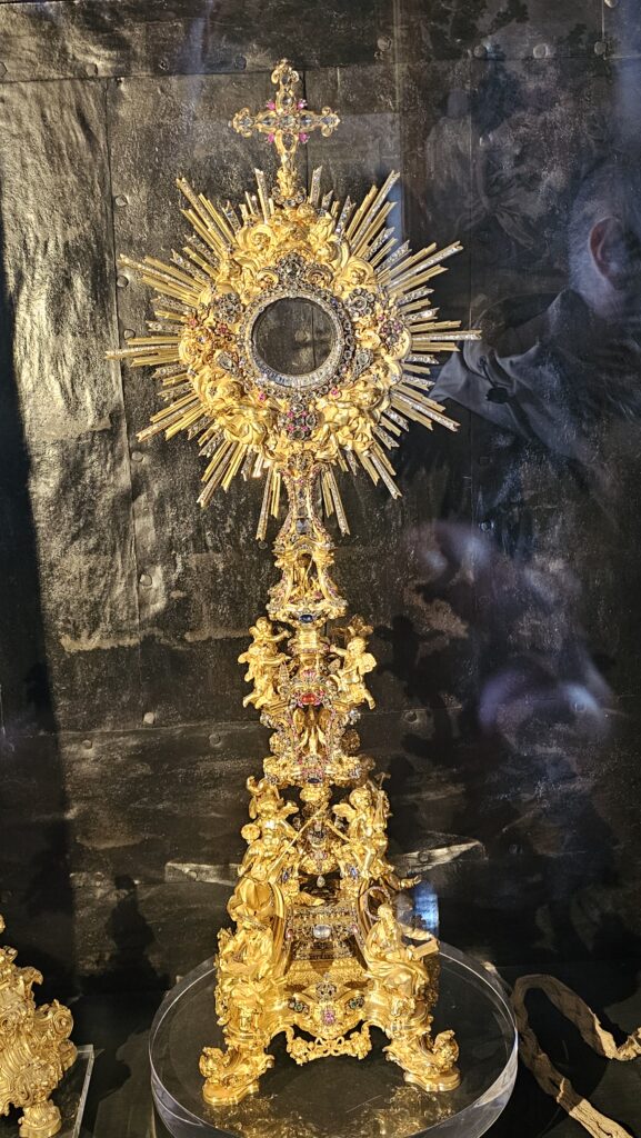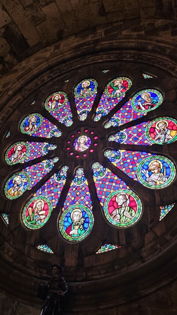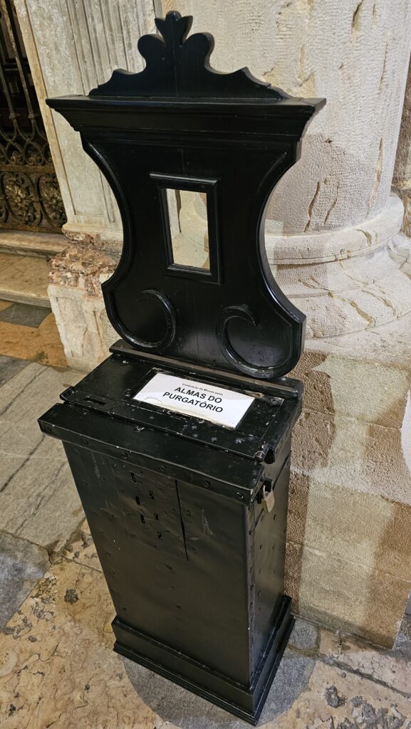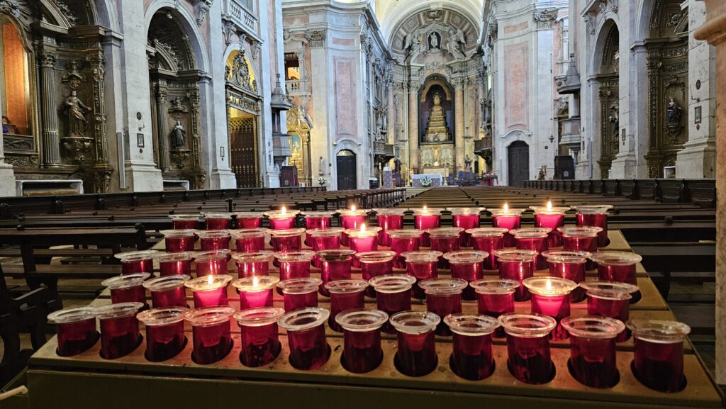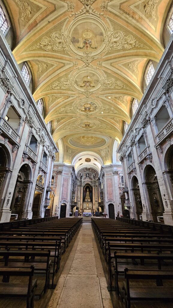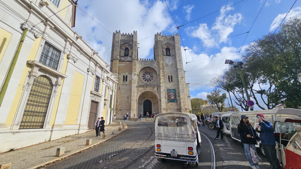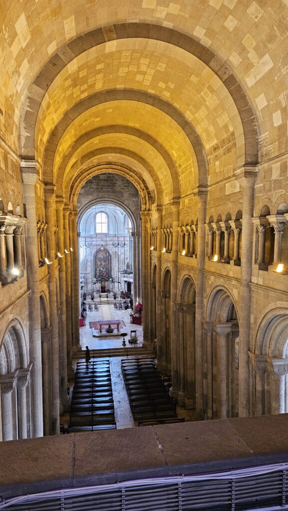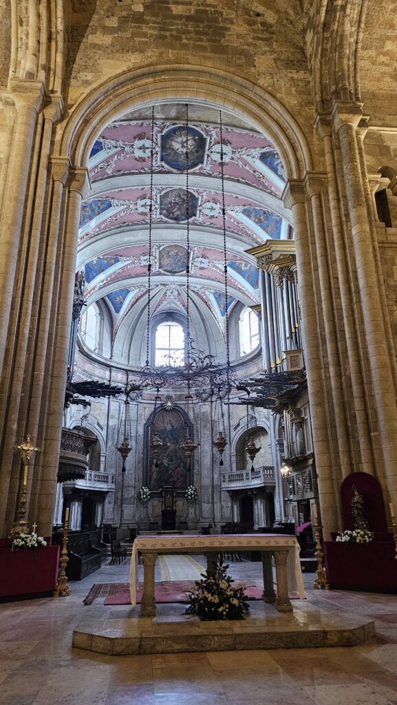 Der Bus, der mich zur Burg brachte, fuhr an der Sé vorbei, der zweitürmigen Kathedrale von Lissabon. Da ich daher wusste, dass es nur bergab geht, lief ich den Weg. Gegen Eintritt kam ich in die Schatzkammer, halbwegs nett, und in die Kirche selbst, diese sehr ansehnlich und groß. Wieder konnte man auf eine Varanda (!) mit Blick auf die Stadt kraxeln. Überhaupt, wenn ich heute eins gelernt habe, dann, dass Lissabon die Stadt der Treppen und dem aufwärts und abwärts ist. Ich habe gerade meinen Plan für die nächsten zwei Tage nicht auf dem Schirm, aber ich hoffe, es hat viel mit Sitzen und Liegen zu tun! Mir tun die Füße weh, da habt Ihr keine Vorstellung von!