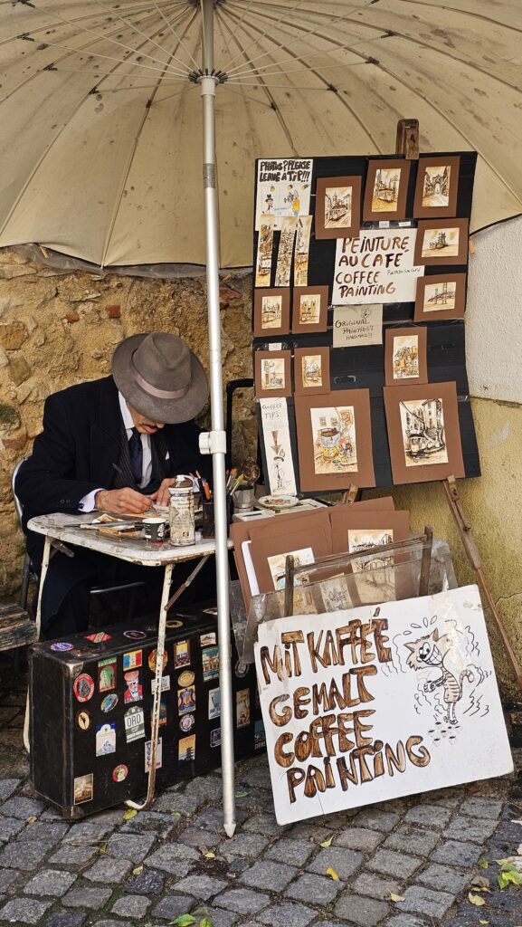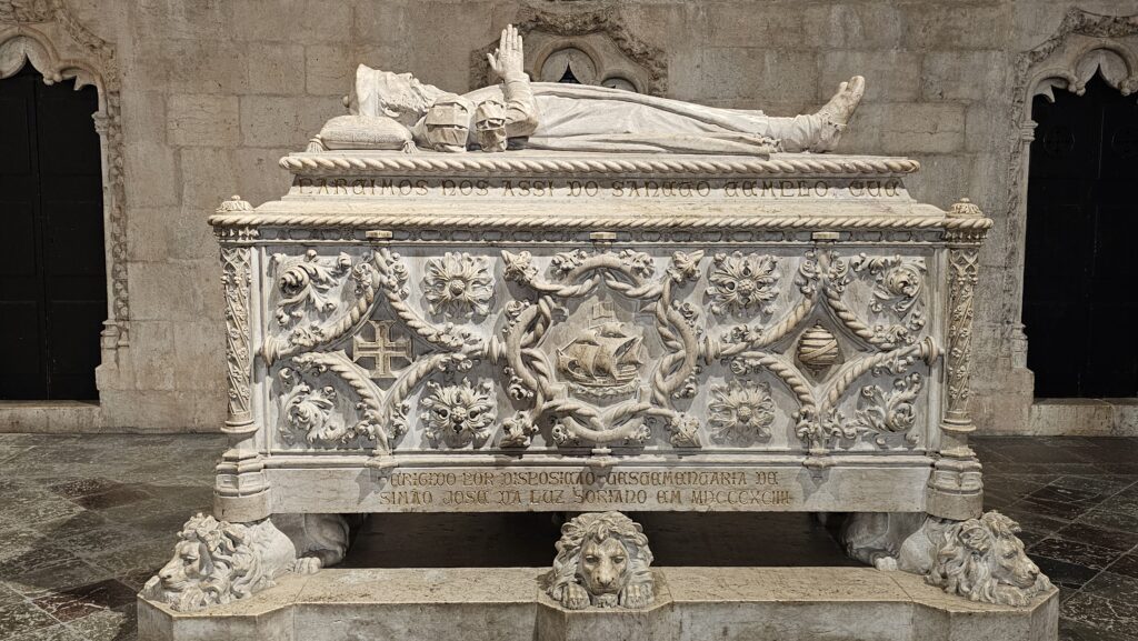 Die Kirche ist in großen Teilen in Restaurierung befindlich, aber ebenfalls sehenswert. Vasco da Gama hat dort seine Gruft, im Kloster haben Fernando Pessoa und Alexandre Herculano ihre letzte Ruhestätte. Fernando Pessoa ist hier ohnehin sehr gegenwärtig, habt Ihr sein Bildnis gestern im Museum erkannt? Später saß ich noch neben ihm im Café A Brasileira.