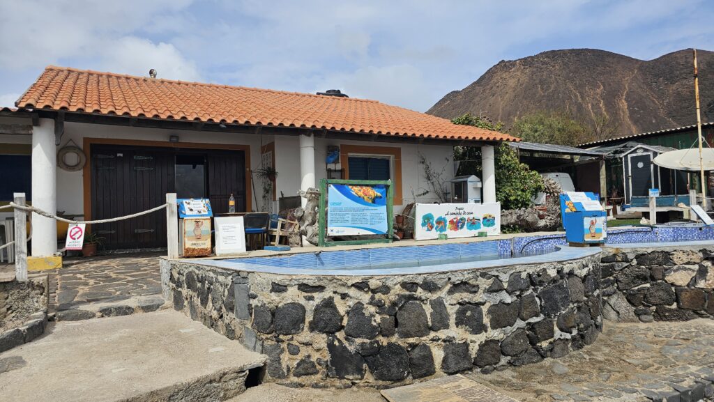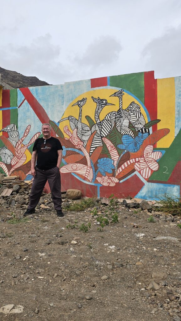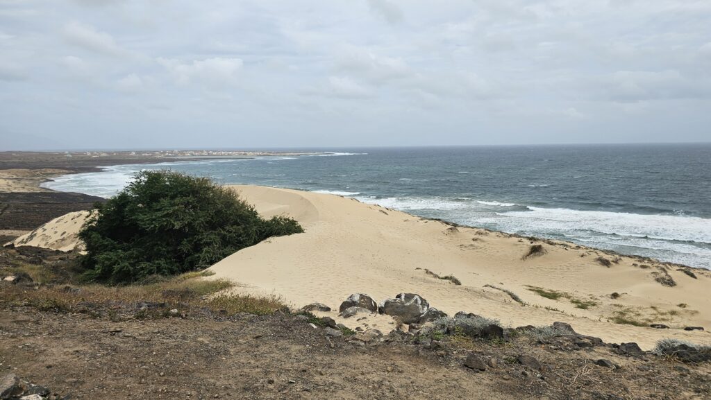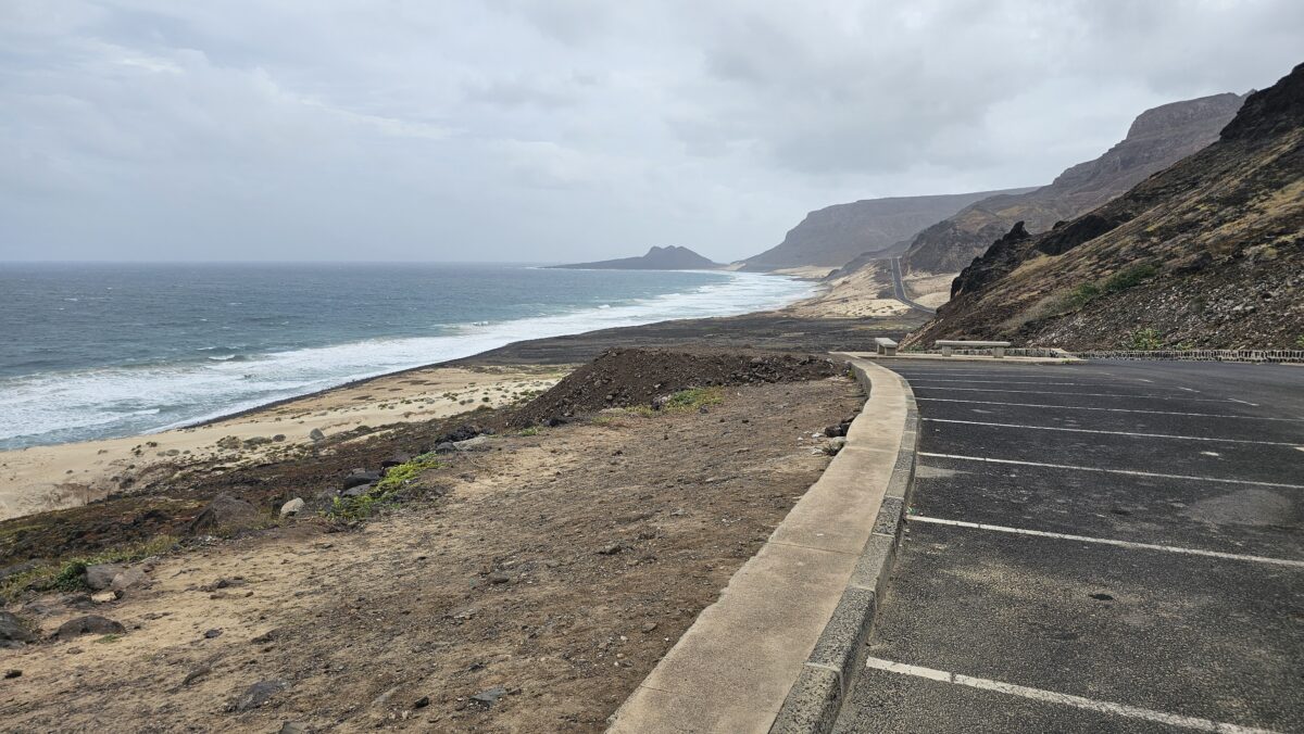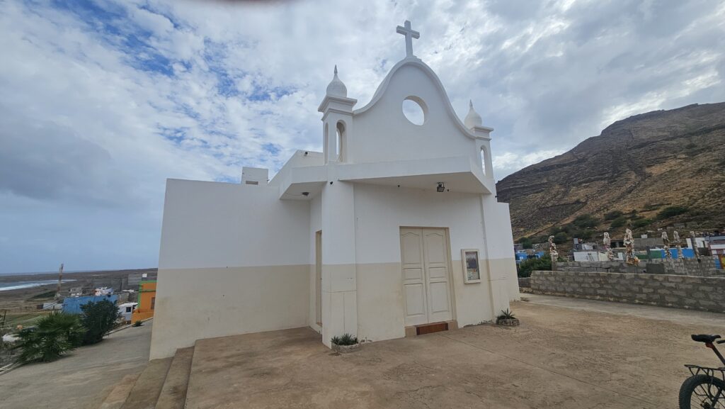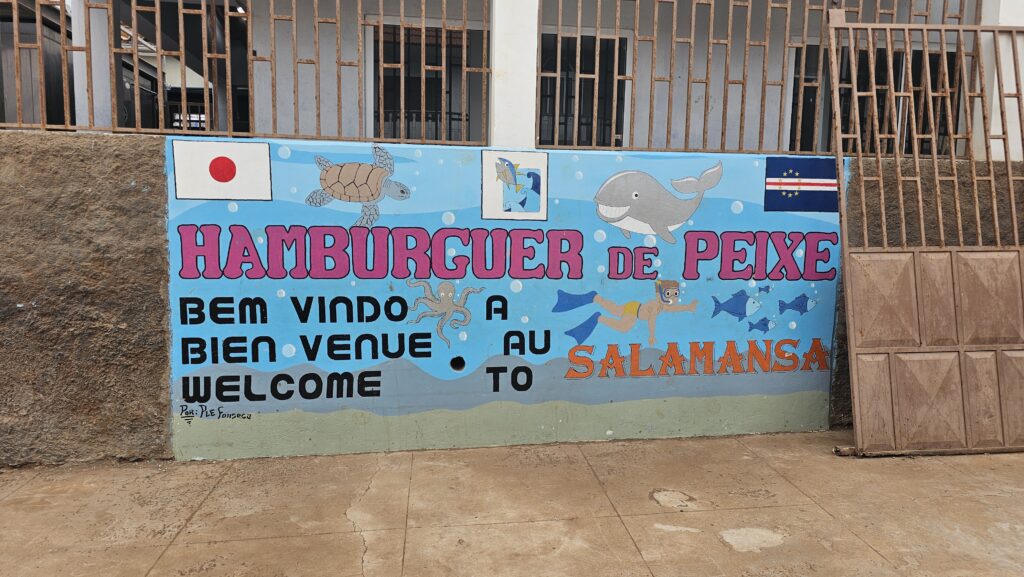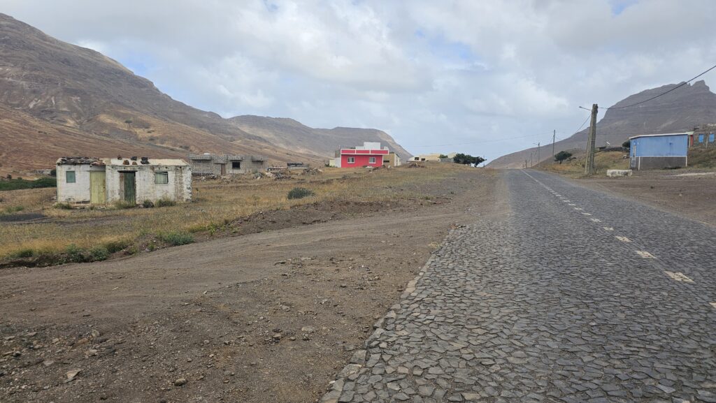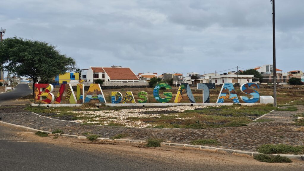 Man darf sich Fischerdörfer hier jetzt nicht so idyllisch wie auf griechischen Inseln vorstellen. Ein Mix aus bunten Häusern, Rohbauten, viel Gewusel, kein Tinnef. Die Fischer können hier nicht an der Küste Ihre Beute einholen, das Meer ist mit Plastik verseucht. Sie fahren für mehrere Tage weiter hinaus, Richtung der unbewohnten Insel Sta. Lucia, um dann hoffentlich mit reichem Fang zurückzukehren. Damit dieser nicht vergammelt, brauchen sie Tonnen von Eis, das im Ort in Kooperation mit einer japanischen Firma produziert wird. São Vicente hat kaum eigenes Wasser, daher gibt es auch nur wenig Landwirtschaft. Meerwasserentsalzungsanlagen und ein bisschen Grundwasser stellen die Versorgung sicher. Als wir ankamen, war gerade Wasserverteilungsorgie, das halbe Dorf füllte Kanister mit Trinkwasser aus dem einen Reservoir und Brauchwasser aus dem anderen.