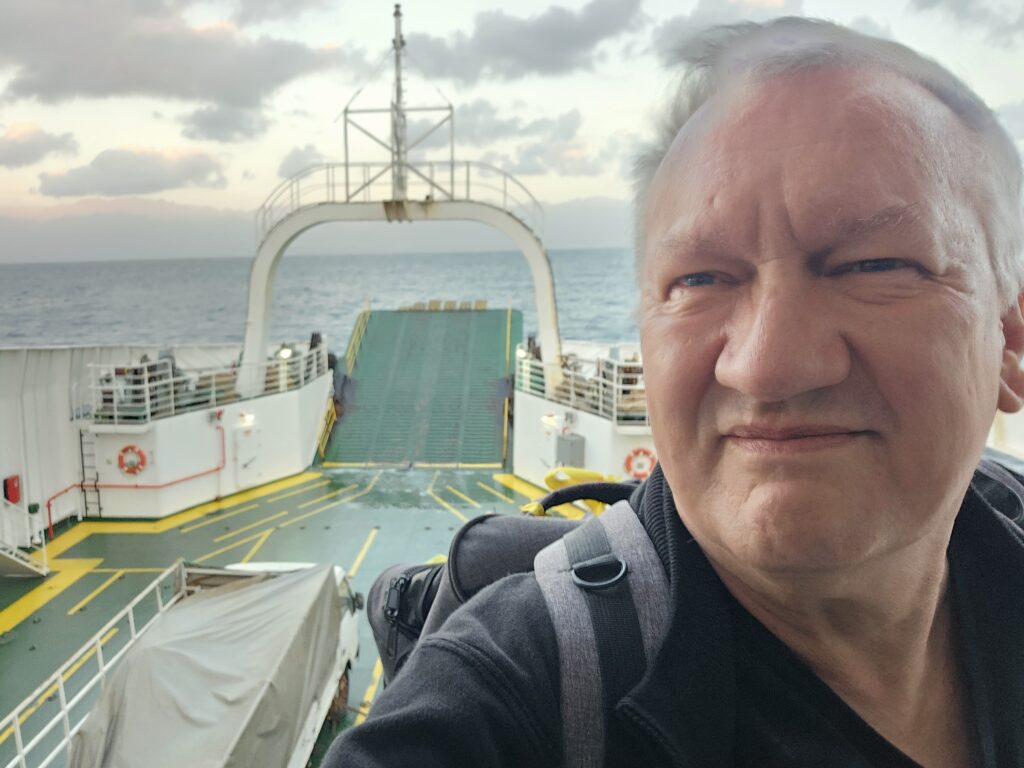 Leider schlief ich wieder nicht so dolle, was natürlich auch am übertrieben langen Mittagsschlaf lag. Um 5 Uhr raffte ich mich auf, packte meine Siebensachen, holte mir Frühstückspaket und einen Kaffee ab und beglich meine Restschulden. Punkt 6 Uhr stand der Fahrer vor der Tür und brachte mich zum Hafen. Ein bisschen Zweifel hatte ich ja, ob ein elektronisches Ticket ausreichte, trugen doch wirklich alle anderen Passagiere einen Ausdruck mit sich herum. Aber man ließ mich an Bord, nachdem man mir mein Gepäck entrissen hatte. Würde ich es je wiedersehen?