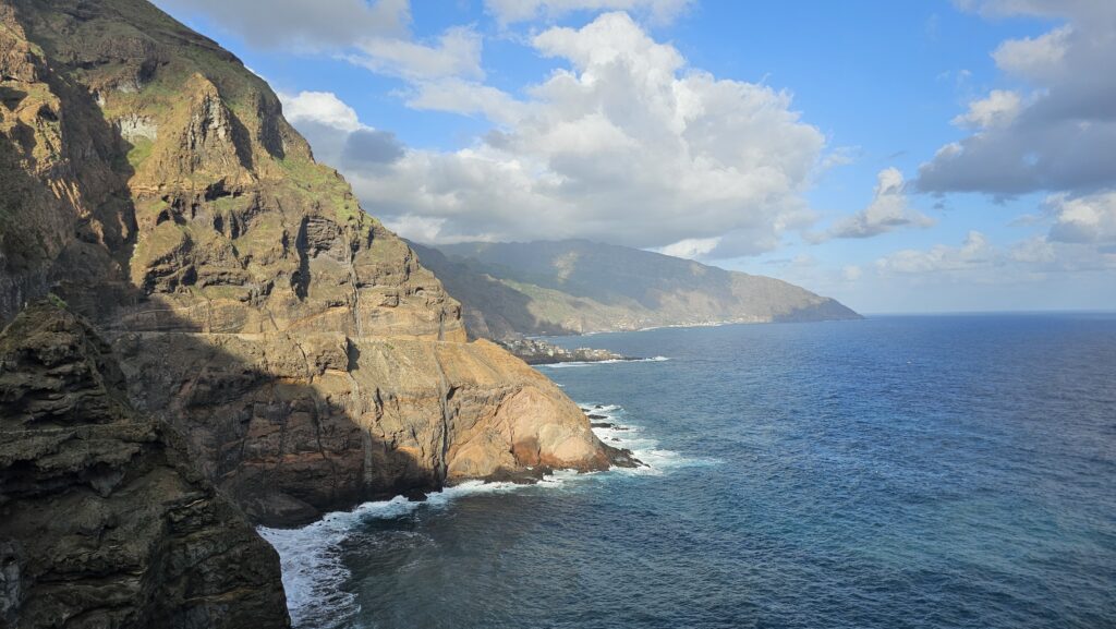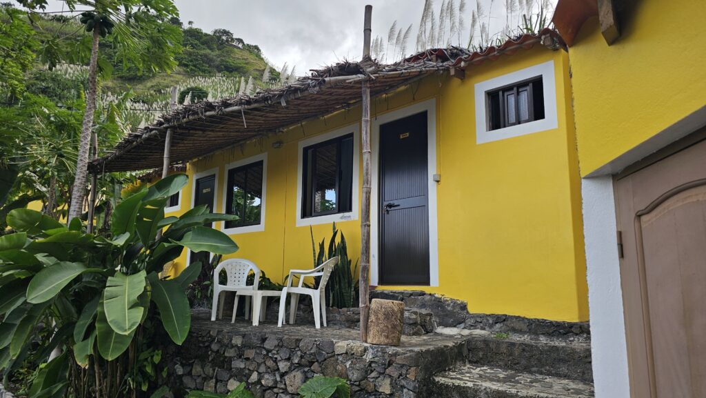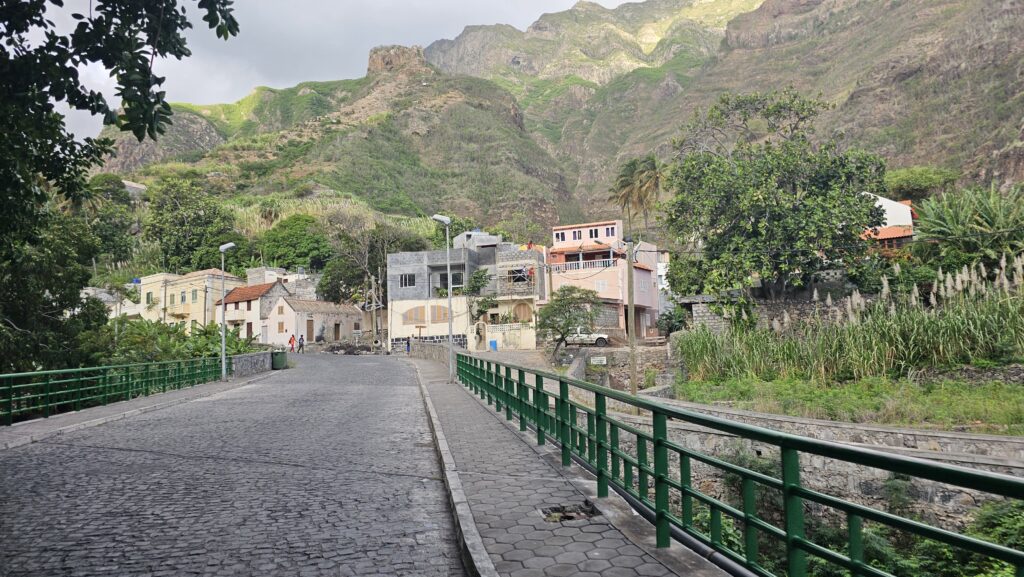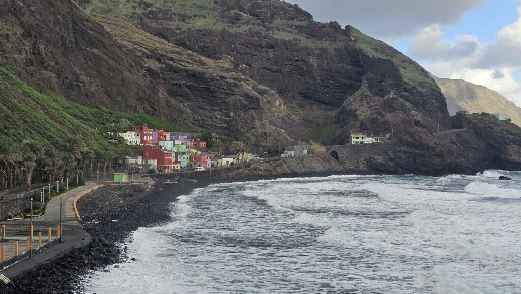 Profitipp: Wenn man mit dem Boarding in Mindelo wartet, bekommt man sein Gepäck in Porto Novo zuerst wieder. Ich bekam meins halt zum Schluss. Ein Fahrer, Jason, wartete schon auf mich und brachte mich zu meinem Hotel im Vale do Paúl. Die einstündige Fahrt über die Insel hat mir sehr gut gefallen. So pittoresk, so grün, einfach nur schön. Küstenstraßen wechselten sich mit Canyons ab, Orte voll bunter Häuser mit Plantagen. Ein paradiesisches Stück Erde.