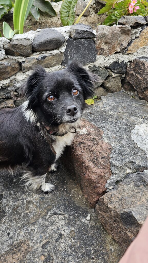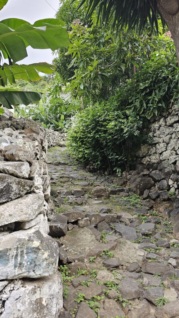 Am Zielort angekommen, gab es eine Überraschung, von der ich noch nicht weiß, wie ich damit umgehen soll. Jason hielt an einem engen Aufgang, lud mein Gepäck aus und deutete auf einen kleinen, gelben Punkt 3 Kilometer über uns: „Your hotel!“. Ich solle warten, man sende jemanden für das Gepäck. Ich wartete, trank einen Schluck Wasser, machte ein paar Fotos, wartete, trank einen Schluck Wasser, schaute auf die Uhr. Nach 30 Minuten machte ich mich beherzt auf den Weg, um nach etwa 200 Metern einen ersten Schwächeanfall zu erleiden. Nach weiteren 200 Metern kam mir eine Niederländerin entgegen, die auch im Hotel wohnt. Sie rief für mich die Rezeption an, ja, man habe jemanden geschickt, aber von „der anderen Seite“. „Soll ich wieder zur Straße zurück?“. Ich sollte. Auf der Mauer am Abzweig saßen zwei kleine Mädchen. Ich setzte mich dazu und wartete, trank einen… Ihr wisst schon. Irgendwann kam eine andere Dame aus dem Nichts und schwallerte mich auf Kreol voll. Ich schwallerte auf Portanhol zurück. Dann schwallerte sie mit den Mädchen. Es stellte sich heraus, dass eine von denen mein Gepäcktransport war. Leute, ich war vielleicht was von angepisst. Das arme Ding. Mein Koffer wiegt 22 Kilogramm! Ich hatte aber auch noch meine zwei Handgepäckstücke und war nicht in der Lage, ihr zu helfen. Oben bekam sie das fetteste Trinkgeld ever und die Hotelmanagerin eine böse Schimpftirade ab. Ob wir jetzt noch Freunde werden?