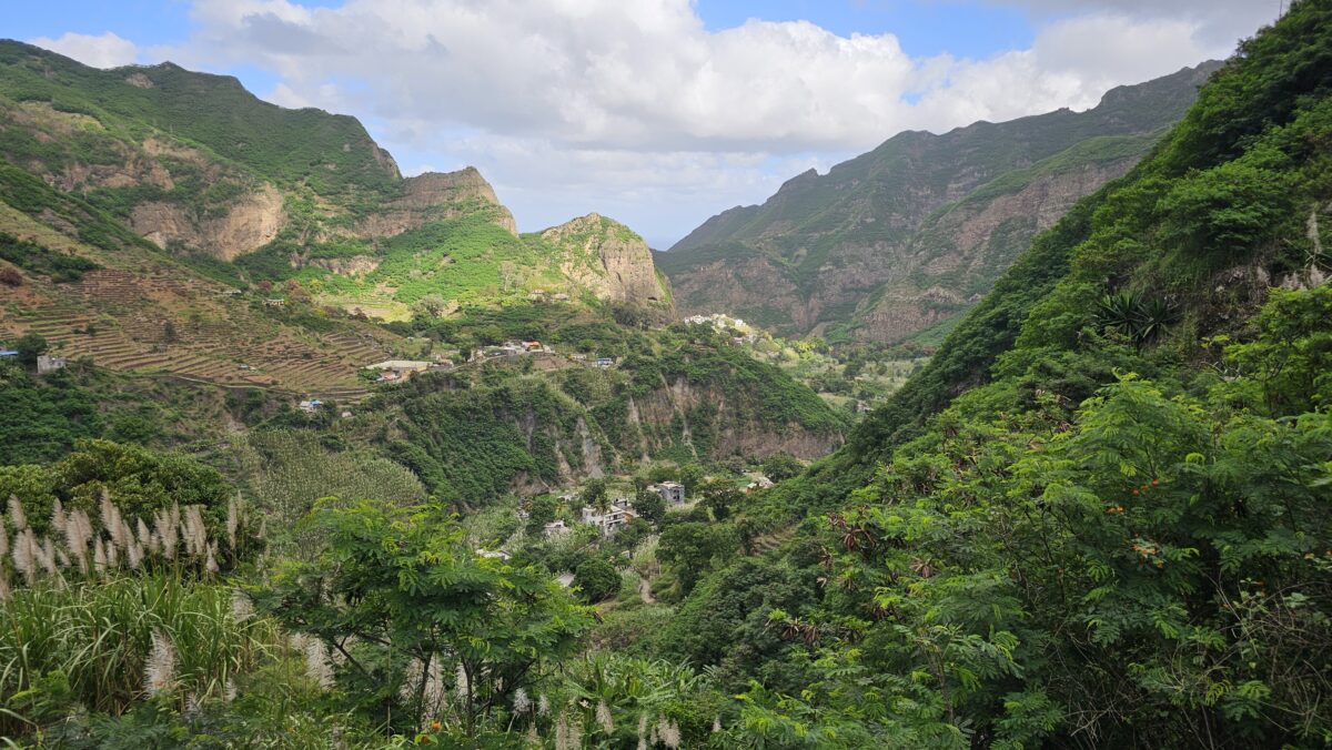 Profitipp: Wenn man mit dem Boarding in Mindelo wartet, bekommt man sein Gepäck in Porto Novo zuerst wieder. Ich bekam meins halt zum Schluss. Ein Fahrer, Jason, wartete schon auf mich und brachte mich zu meinem Hotel im Vale do Paúl. Die einstündige Fahrt über die Insel hat mir sehr gut gefallen. So pittoresk, so grün, einfach nur schön. Küstenstraßen wechselten sich mit Canyons ab, Orte voll bunter Häuser mit Plantagen. Ein paradiesisches Stück Erde.