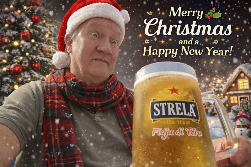Ich überlegte ein bisschen hin und her, ob ich mir für abends einen Tisch sichern sollte; aber irgendwie ist es die letzten Jahre ja auch ein bisschen eingerissen, dass ich mir in der Unterkunft Schnittchen mache. An solchen Feiertagen alleine auswärts zu essen, lässt einen doch immer sehr wunderlich erscheinen. Sicherheitshalber schaute ich noch beim deutschen Honorarkonsul nach, ob der vielleicht einen Empfang für alle Deutschen auf der Insel gibt, aber ich fand keine Hinweise. Also, ab in den Supermarkt. Und schon sind wir wieder bei der No-Stress-Thematik. Denn auch der Kapverdianer neigt dazu, Weihnachten alles auf den letzten Drücker zu erledigen. Vor den Geldautomaten standen meterlange Schlangen. Die Stadt war rappelsvoll, jeder Pröddelladen war rappelsvoll, die Supermärkte waren rappelsvoll. Dafür aber dann auch geplündert wie nix. Ich fand ein Netz Käsebällchen, einen kleinen Orangenkuchen und eine Tüte Mandelkrokant. Die Schokolade für 7 Euro die Tafel ließ ich liegen. In der Zentralbäckerei erhaschte ich eins der letzten Brötchen. Und so habe ich jetzt gerade ein äußerst bescheidenes Heiligabendessen. Aber das war, wie ja bei vielen Familien, bei uns nie besonders ausgefallen, sondern immer sehr schlicht.