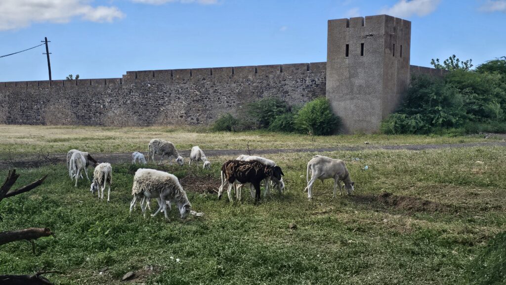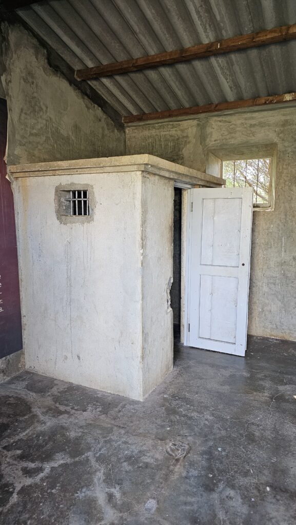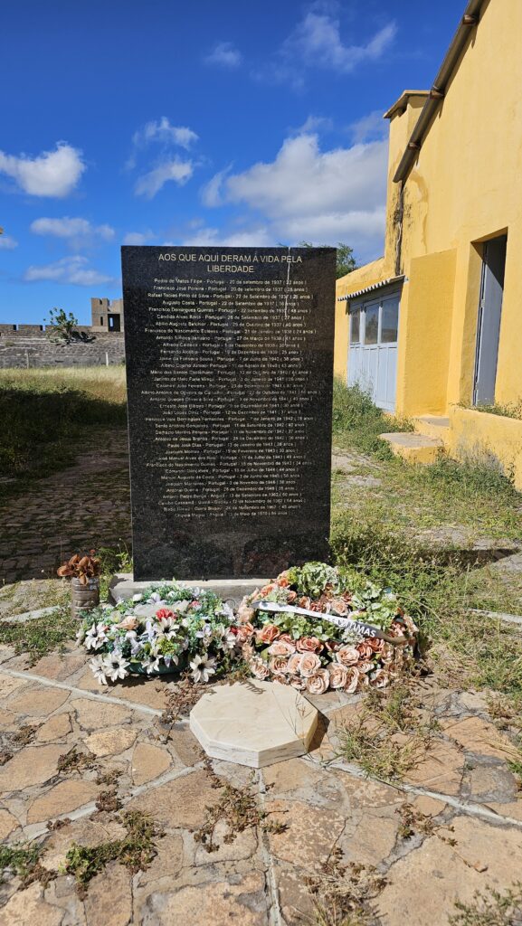 Vor den Toren von Chão Bom, 3 Kilometer von Tarrafal entfernt, liegt ein vom Salazar-Regime errichtetes Konzentrationslager, das heute eine Gedenkstätte ist und ein kleines Widerstandsmuseum beherbergt; ich beschloss, die paar Kilometer zu laufen. Ab Ende der 30er-Jahre bis Mitte der 50er-Jahre wurden hier politische Gefangene, vorrangig portugiesische Oppositionelle, interniert. Nach mehrjährigem Leerstand entschied man sich, Chão Bom als Arbeitslager für Widerstandskämpfer aus Angola, Guinea-Bissau und den Kapverden selbst zu nutzen. Im Gegensatz zu deutschen Lagern wurde hier nicht aktiv ermordet; viele Insassen starben aber einen Tod durch Unterlassung. Medizinische Hilfe wurde verweigert, das Brackwasser nicht abgekocht oder gefiltert. Berüchtigt die Worte des Lagerarztes der „1. Phase“, Esmeraldo País Prata: „Ich bin nicht hier um zu heilen. Ich bin hier um Totenscheine auszustellen.“. Ein bedrückender Besuch.
