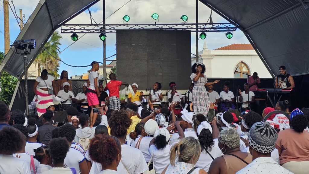 Ich eierte ein wenig durch den Ort, inspizierte sowohl alten als auch neuen Markt, und traf auf einmal auf eine große Bühne am Praça de Tarrafal. Ich war in das Festival der Batucadeiras von Santiago geraten. Dutzende Gruppen von uniformierten Damen wetteiferten miteinander, wer am besten Batucada, eine spezielle Form brasilianischer Samba, tanzt und trommelt. Eigentlich sind es rein weibliche Gruppen, aber in die eine und in eine andere hatte sich je ein Jüngling verirrt, das fand ich ganz entzückend! Und im Hinternkreisen standen die den Damen in keinster Weise etwas nach. Das ganze hallte übrigens noch stundenlang durch die Stadt. Man mag über Kapverde behaupten, was man will, aber leise geht hier nix.