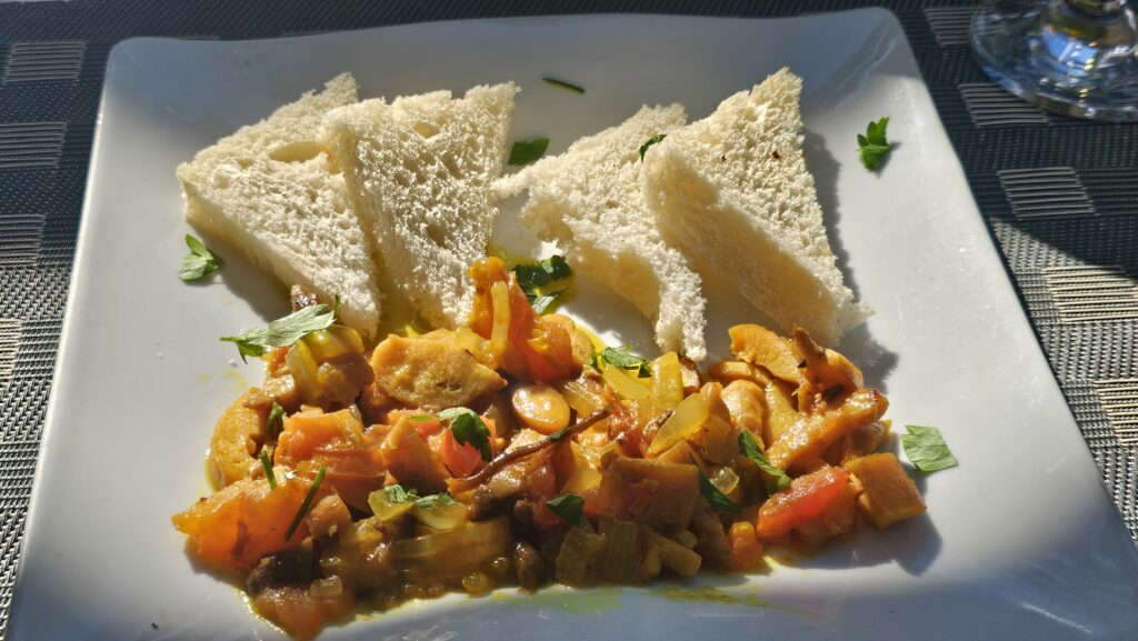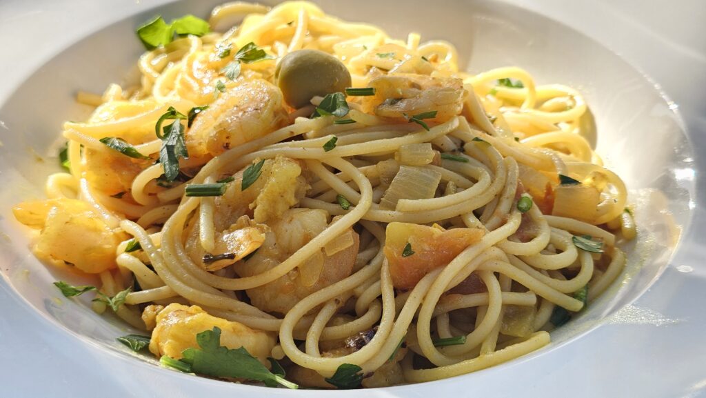 Die Schnecken waren ziemlich lecker, es gab sie mit leicht geröstetem und entrindeten Toastbrot. Noch besser waren allerdings die Spaghetti, die in einer leichten, cremigen Sauce serviert wurden. Die Massa (weitere Bedeutung: „Masse“) in Punta do Sol kam da bei Weitem nicht dran.