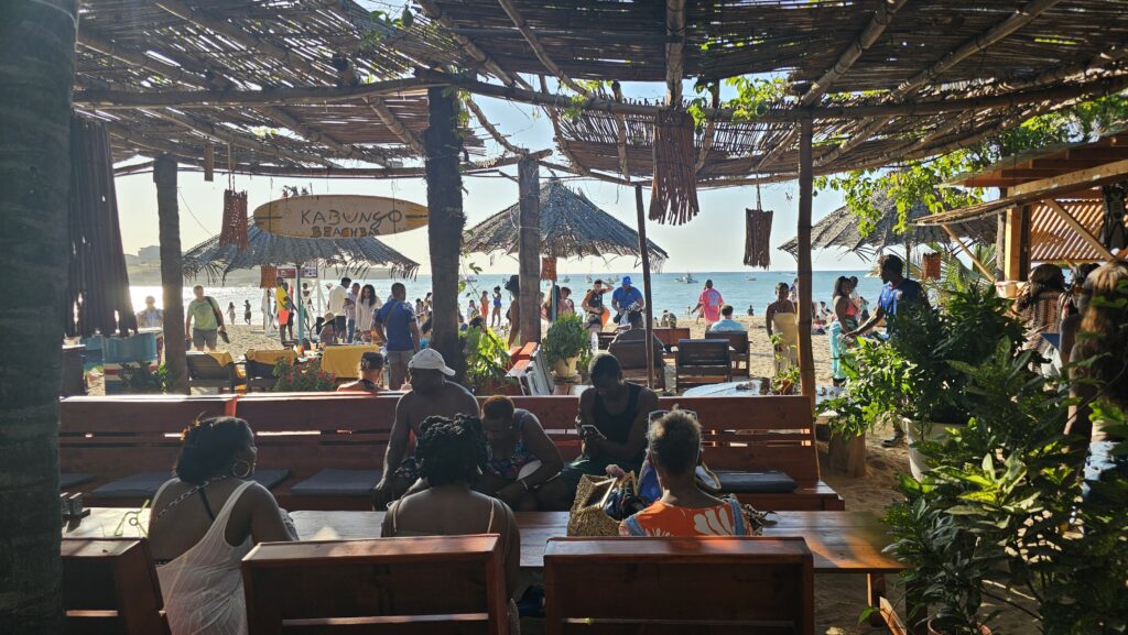 was ich mir in drei Tagen für einen Ruf hier erarbeitet habe… Nach dem Frühstück (heute gab es als Extra Bananenbeignets) lief ich in Ermangelung anderer Pläne zur Strandbar, da ich über den dann noch fast leeren Strand auf den Ozean glotzen konnte. Die Dame am Tresen so: „Caipirinha?“. Um 10 Uhr früh!! Leider gibt es hier keinen Kaffee, daher… neinneinnein, ich muss Euch enttäuschen, es gab Limo.