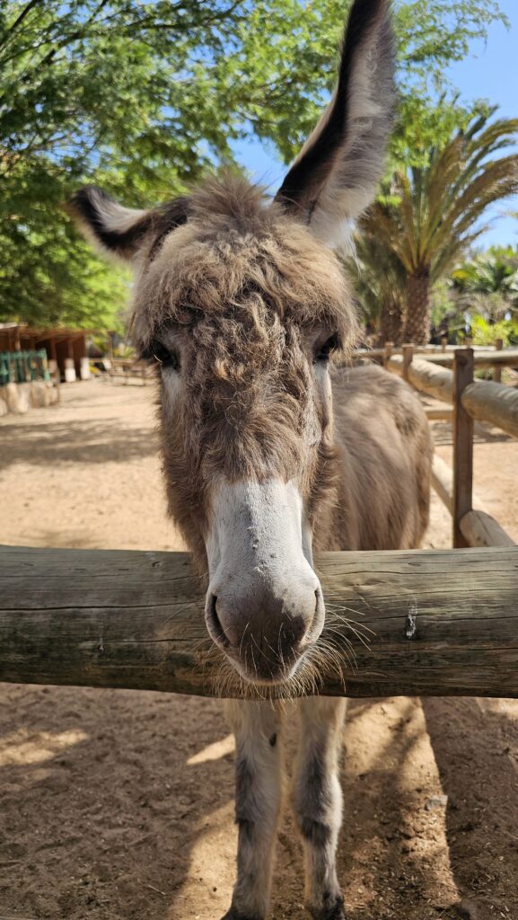 Zuerst ging es an Salinen von Santa Maria vorbei, da wachsen in der völlig versalzenen, sandigen Erde (der Inselname Sal bedeutet ja Salz) tatsächlich blühende Pflanzen!, zum Pachamama Eco Parc. Hier werden zum Teil ausgesetzte oder beschlagnahmte Tiere beherbergt. Es gibt viele Esel, Ziegen, Schildkröten, aber vor allem Federvieh! Aras, Pfauen, Enten, Gänse, Hühner… Viele kleine und sehr bunte Vogelarten sind vertreten. Der Eintritt beträgt 5 Euro und wird als Spende verstanden. Es gibt Erklärtafeln zu Flora und Fauna. Ein nettes Café gibt es außerdem. Seeehr, sehr schön gemacht alles. Klar, man kann sich bei manchen Vögeln fragen, wieso die hier in Käfigen sitzen müssen, aber alle Tiere schienen in guter Verfassung. Da habe ich in diversen touristisch vermarkten Tierrettungsparks schon ganz anderes gesehen.
