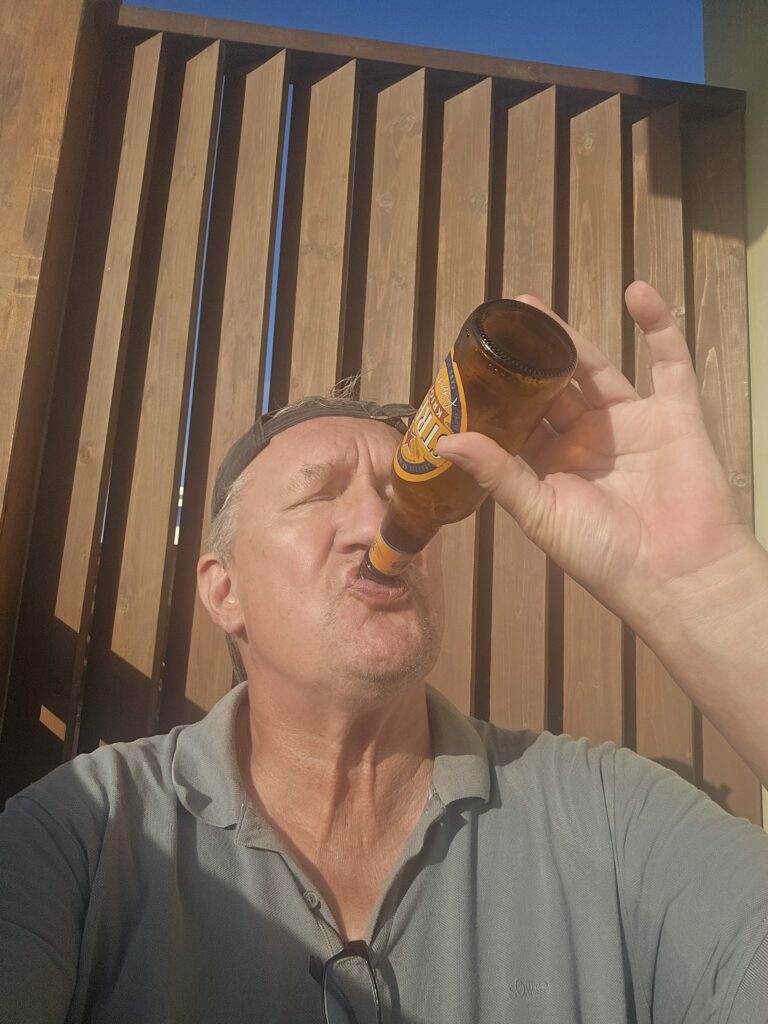 Jetzt musste ich den ganzen Weg wieder zurück. Ich habe es schon bei der Fahrradtour auf São Vicente erwähnt, sinngemäß: Watte hin fährst, musste auch wieder zurückfahren. Auch wenn Sal fast so flach ist wie mein Waschbrettbauch und das Fahrrad mal über einen drei Ligen höher spielenden Akku verfügt, nach 40 Kilometern verlor ich ein ganz kleines bisschen die Lust. Ich war dankbar, als ich in Santa Maria am Fahrradverleih ankam. Und ich war dankbar, dass dieser schräg gegenüber vom Gasthaus liegt, wo ein kaltes Bier im Kühlschrank auf mich wartete.
