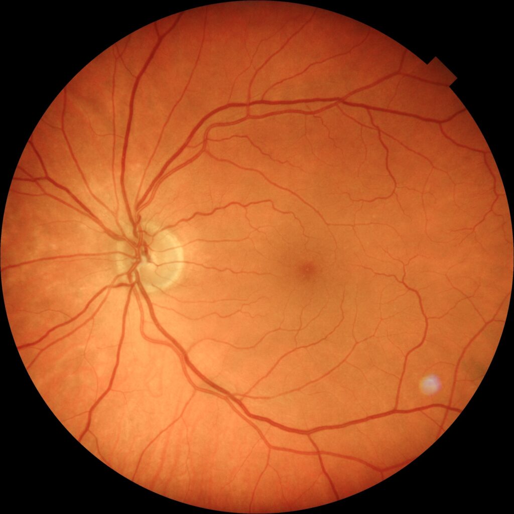 Vor ein paar Wochen war ich beim Betriebsarzt, meine Augen haben sich verschlechtert. Auf den Befund musste ich fast vier Wochen warten, dann kam die Karnevalsflucht dazwischen. Daher war ich erst die letzte Woche beim Optiker. Die Bildschirmarbeitsplatzbrille schlug mit nur ein paar Euro zu Buche, aber die Gleitsichtbrille macht mich arm. Seufz. Ich konnte aber auch vor Ort für 35 Euro eine Augeninnendruckmessung und eine Netzhautfotografie machen lassen. Das nahm ich mal wahr, denn beim Augenarzt wartet man ja monatelang auf einen Termin (zumal meine letzte Ärztin während der Untersuchung die ganze Zeit privat am Handy quasselte, das war nicht vertrauenerweckend). Jetzt bin ich stolzer Besitzer zweier wunderhübscher Fotografien meines Augenhintergrundes.